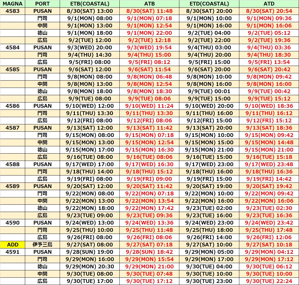 【コンテナ船動静案内】M/V MAGNA 2025年9月